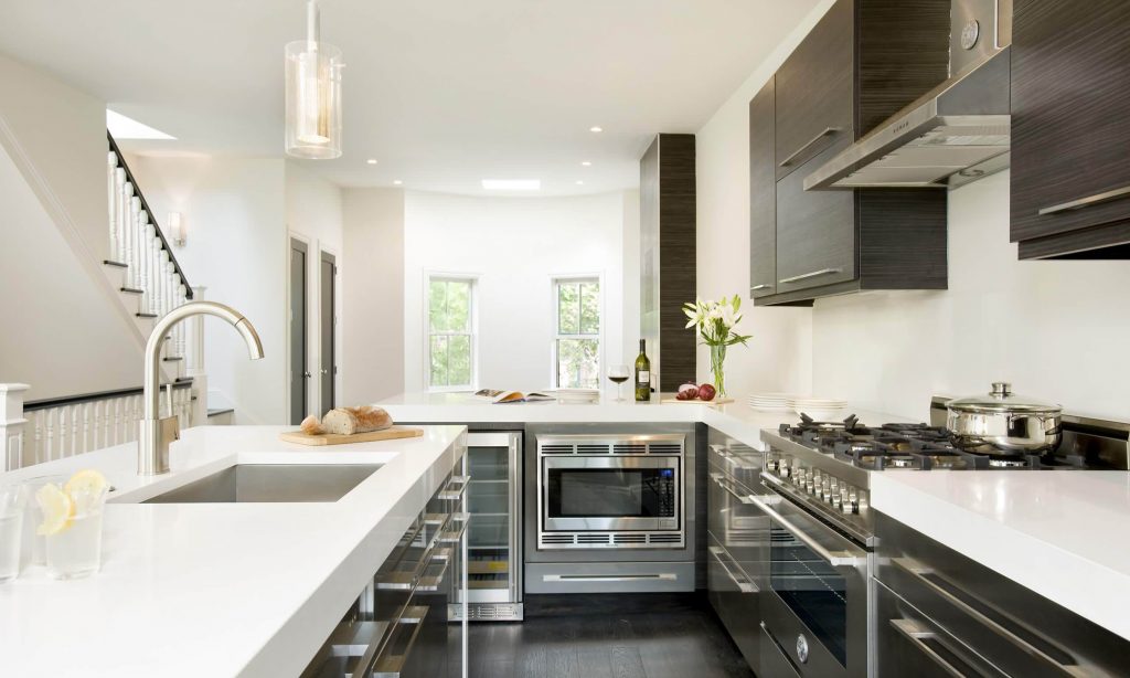 At present, the mainstream material of the table is quartz stone, artificial stone, natural stone, and the utilization rate of stainless steel is gradually decreasing. To put it simply, artificial stone is made of resin, aluminum powder (calcium powder), pigment and curing agent; Quartz stone is quartz crystal plus resin and other additives by high pressure, high temperature synthetic, because the plate contains up to 93% of the quartz sand is called quartz stone, is now the highest selection of products.