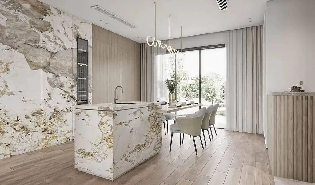 ▲ The display of rock panels in the application fields of building facade, furniture, bathroom, kitchen, background wall, ground and so on.